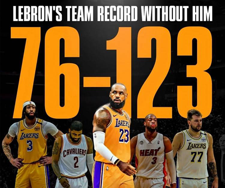 7月9日,媒体公布了关于詹姆斯职业生涯出勤率、胜率以及他缺席时球队胜率的统计数据。据统计,詹姆斯的职业生涯胜率超过六成,而在他缺席的情况下,球队的胜率却不到四成。